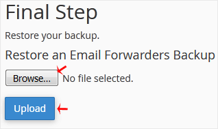 5. Click on Browse. Select the backup file from your computer and click on Upload.
